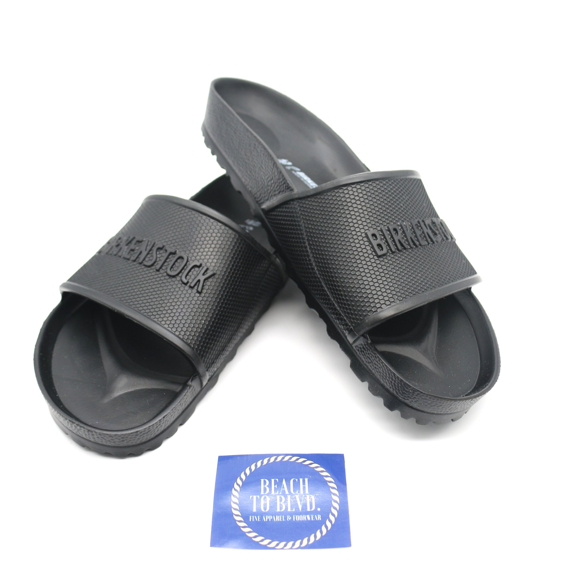 The BIRKENSTOCK Barbados is a sporty slide design with a hexagon pattern and logo lettering. Modeled on the cork sandal, this sandal is made from one piece of light, flexible and waterproof molded EVA.