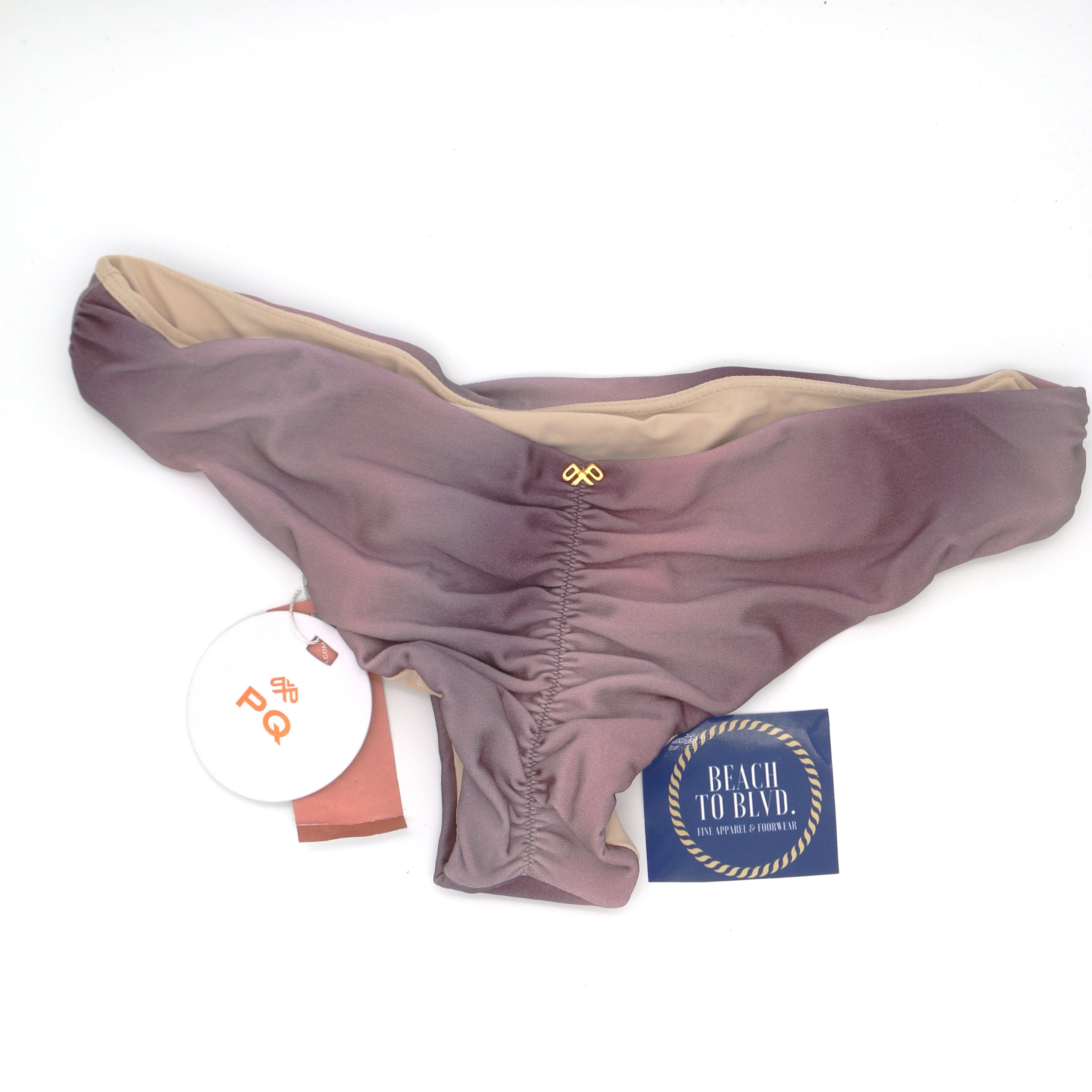 85% polyamide, 15% elastane.Lining: 84% polyamide, 16% elastane. Made in Colombia. Hand wash. Ruched back. Item not sold as set.