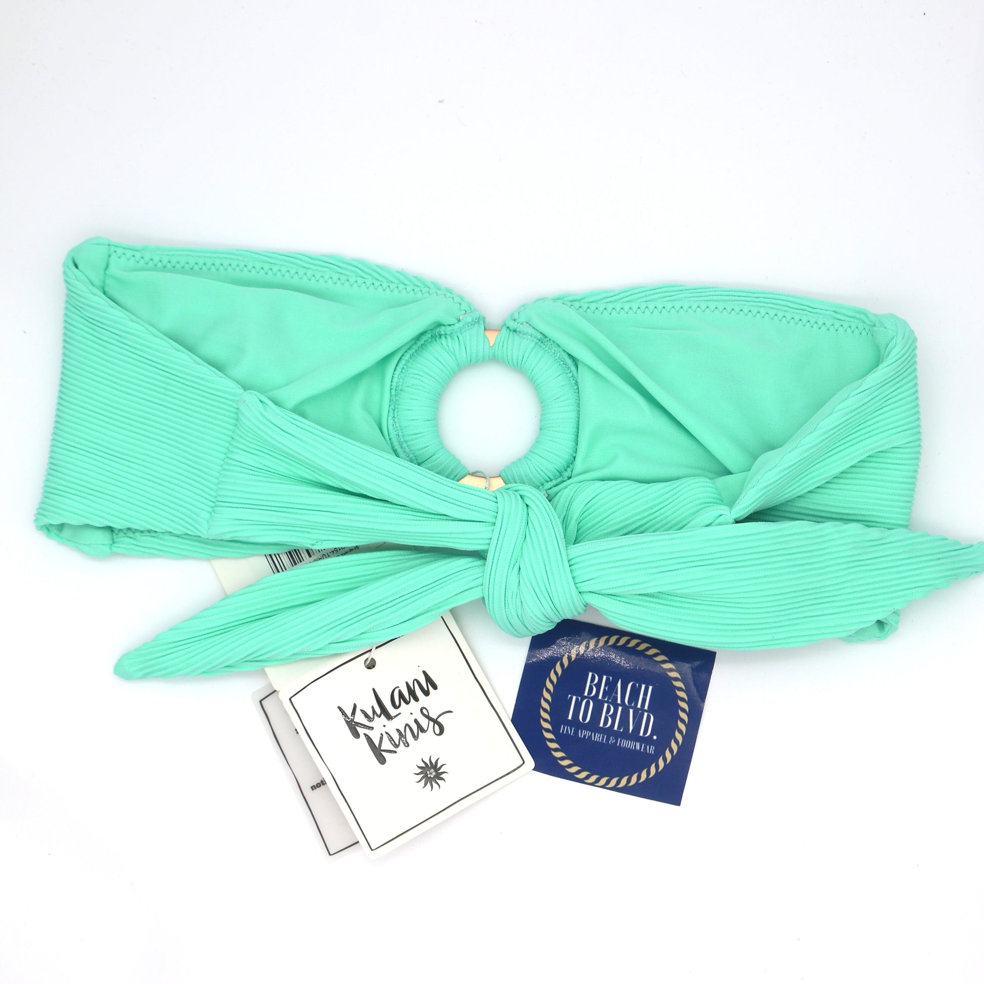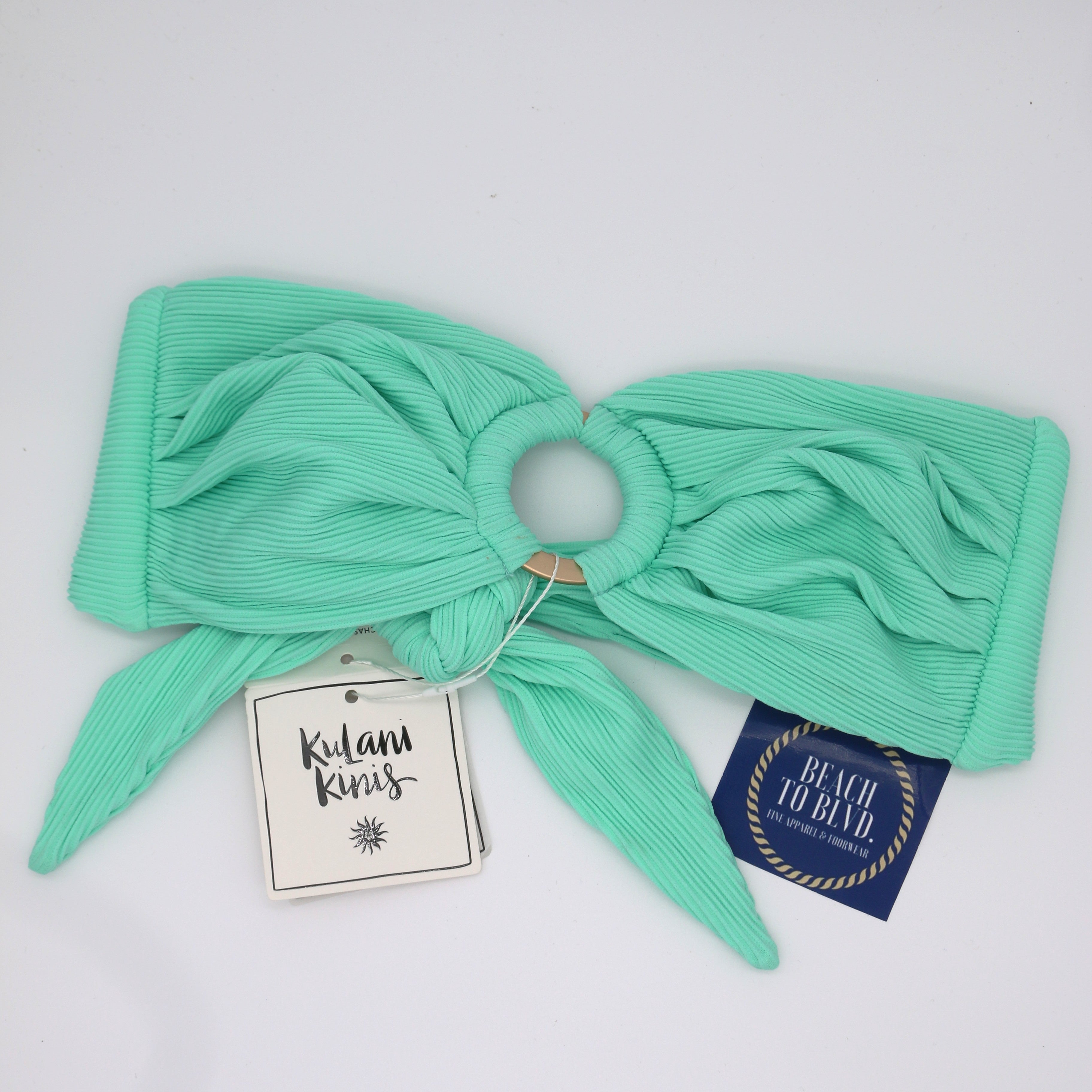 Turquoise mint green ribbed strapless bandeau bikini top