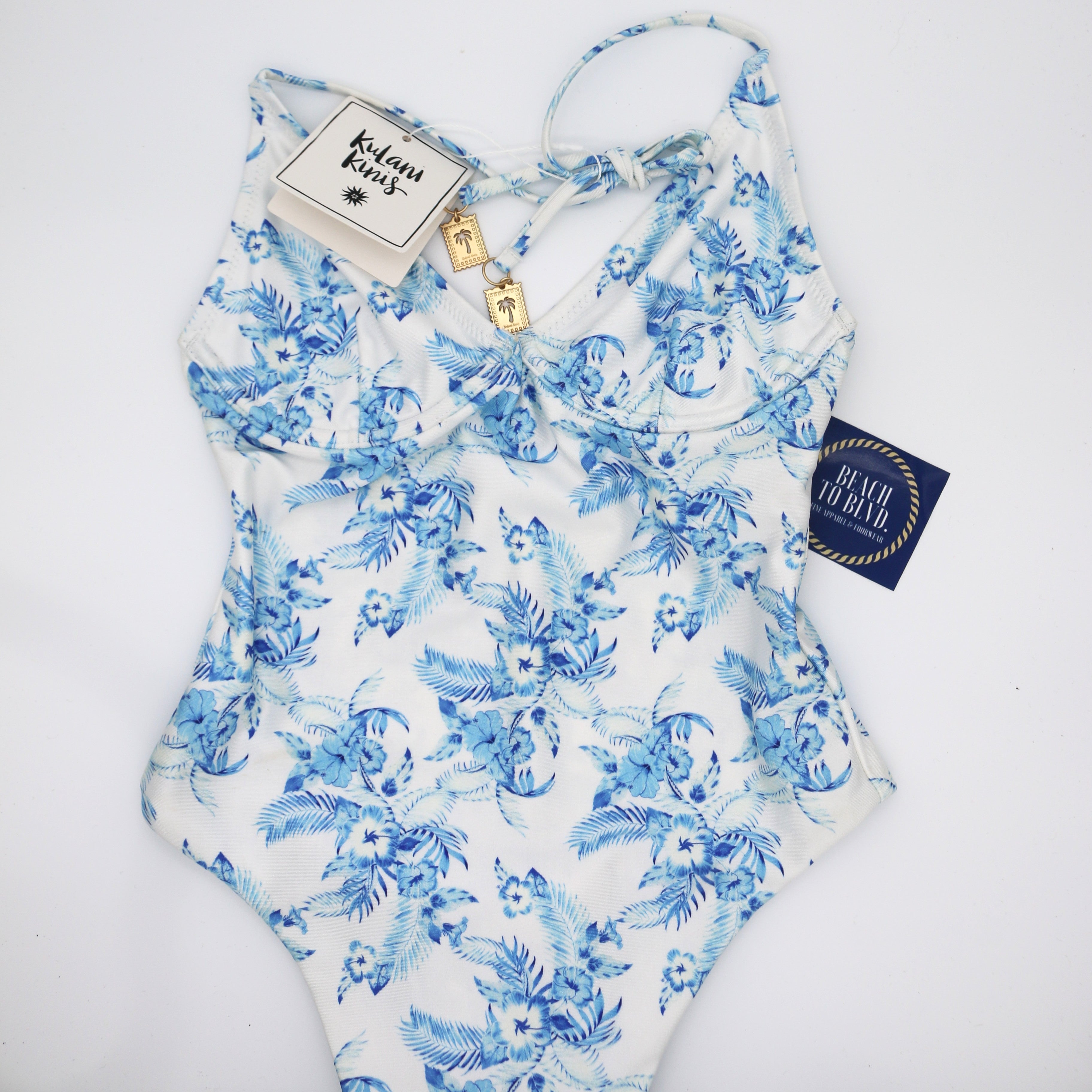 This Kulani Kinis one piece features a halterneck tie-up closure, unpadded cups with underwire, and cheeky coverage. It is composed of 88%...