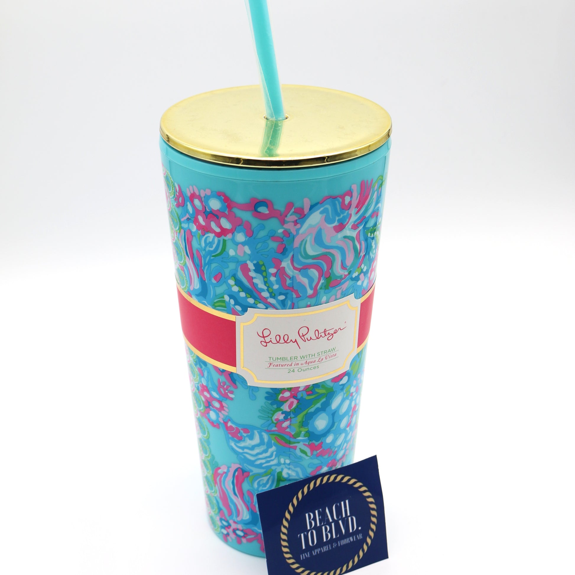 Lilly Pulitzer Tumbler with Straw 24 oz, Aqua La Vista