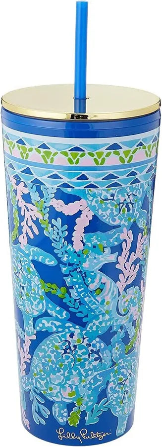 Lilly Pulitzer Tumbler with Straw 24 oz, Turtle Villa Lilly Pulitzer Tumbler with Straw 24 oz, Turtle Villa