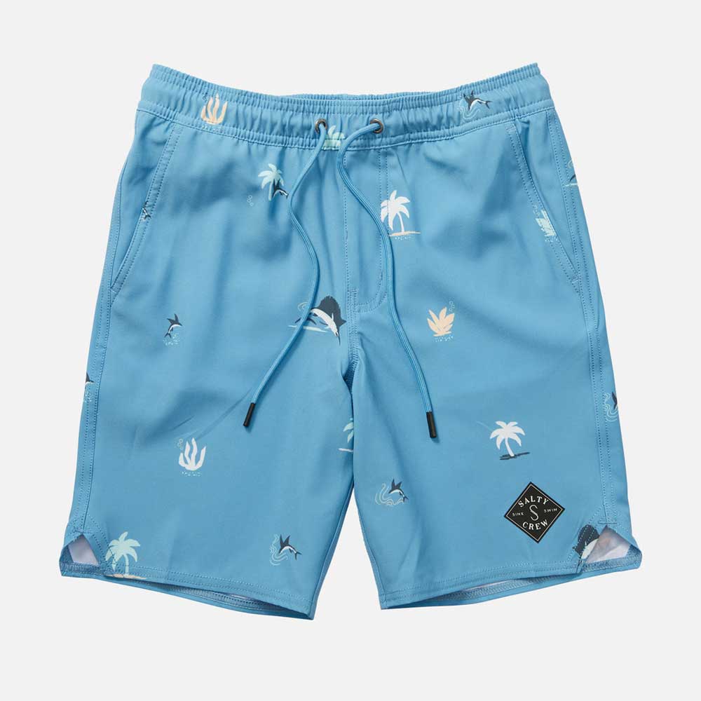 Chill in style with Salty Crew's Lowtide Elastic Boardshorts in Azul Blue! With a 16 inch outseam and a blend of 56% Polyester, 35% Recycled Pol...