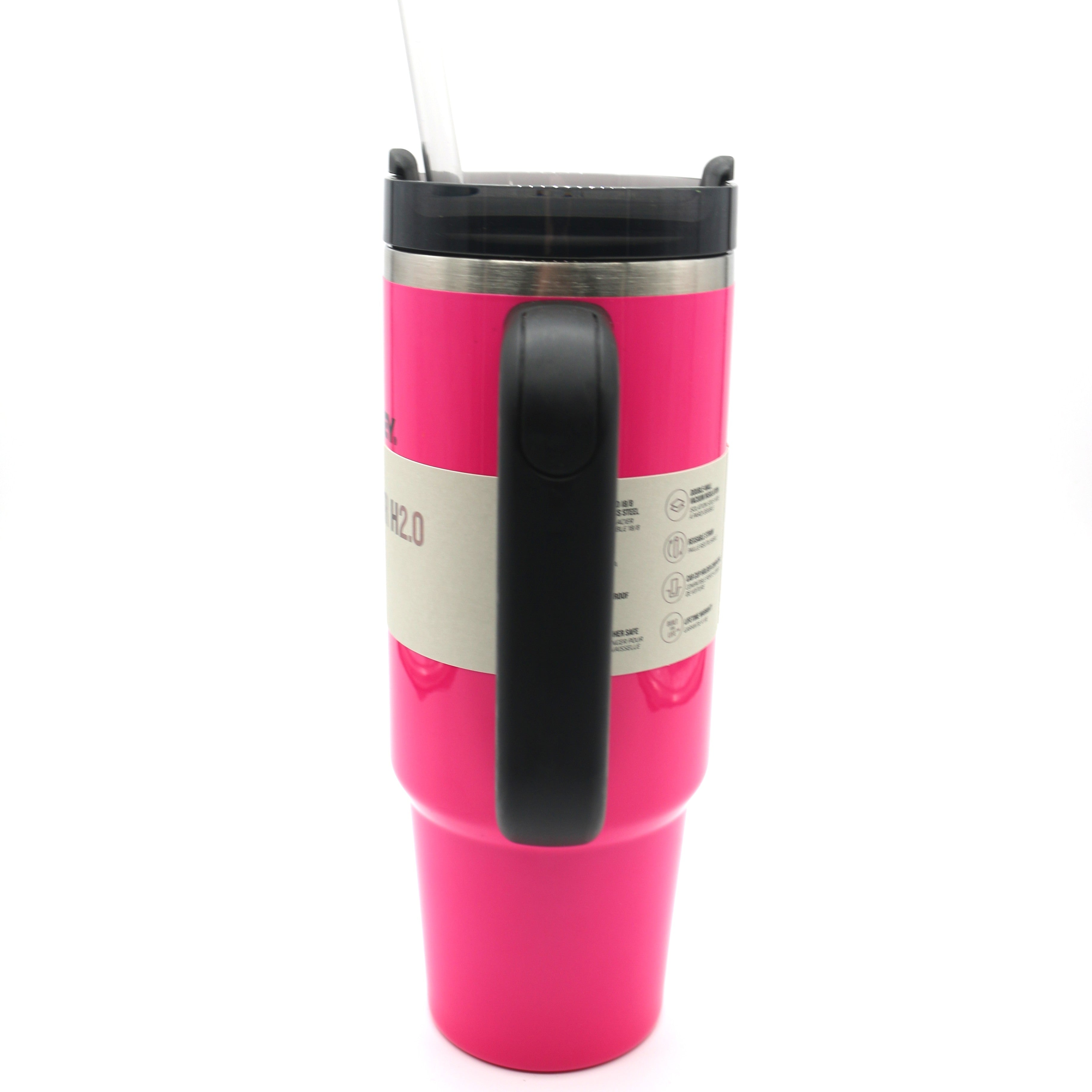 This Quencher H2.0 is generously sized (but not oversized) with an easy-carry, comfort-grip handle and a narrow base that will fit most cup holders. Long day of meetings? Rowing class? Trip out of town? Our durable 30 oz tumbler, made with recycled stainless steel, is up to the hydration challenge. The double-wall vacuum insulation will keep your water cold for 9 hours and iced for 40 hours. And to cap things off, there’s an advanced FlowState lid that features a rotating cover with three positions: a straw opening designed to resist splashes with a seal that holds the reusable straw in place, a drink opening, and a full-cover top.