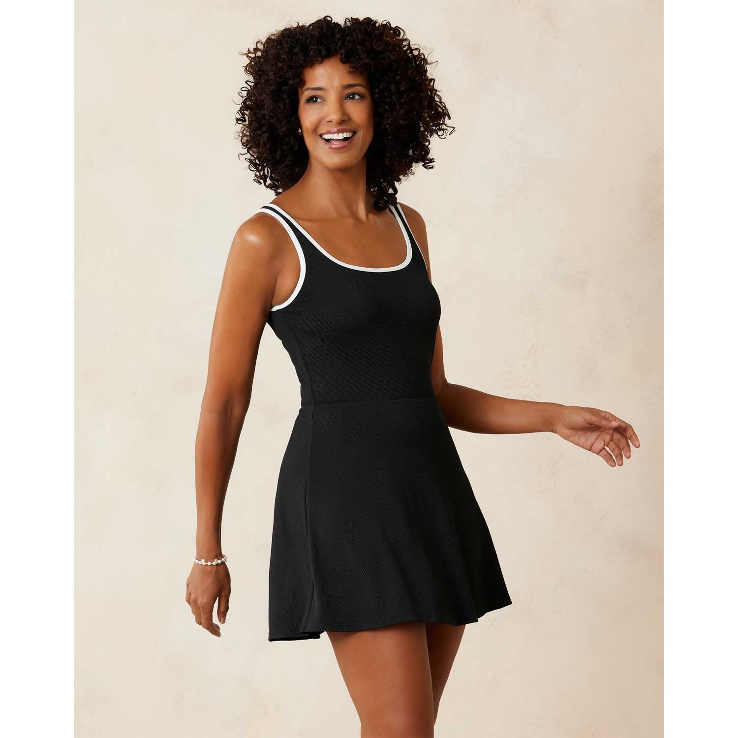 Polish your beach day look with a coverup that will never go out of style. Detailed with contrasting white trim, this chic romper offers the ele...
